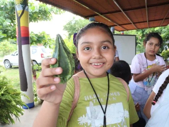 En esta ocasión, la experiencia fue guiada por Guiebeu, integrante de la red de facilitadoras de UMPO. Ella llevó a nuestro programa Fortaleciendo Nuestras Raíces un taller llamado “Sembrando nuestros ombligos”, un recorrido vivo para reconocer el territorio de Unión Hidalgo a través del contacto directo con la tierra. Las niñas y los niños exploraron plantas comestibles y medicinales, caminaron por senderos y aprendieron cómo funciona el mundo polinizado que nos rodea.